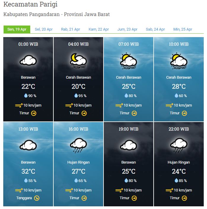 Laporan Harian & Prakiraan Cuaca Kabupaten Pangandaran – Senin, 19 April 2021