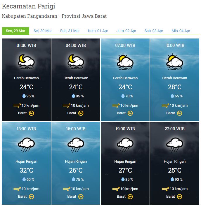 Laporan Harian & Prakiraan Cuaca Kabupaten Pangandaran – Senin, 29 Maret 2021
