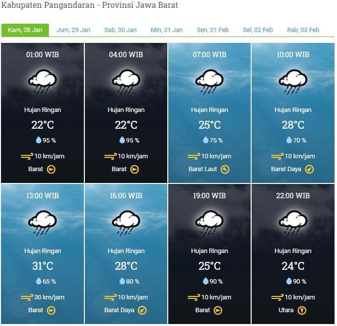 Laporan Harian & Prakiraan Cuaca Kabupaten Pangandaran – Kamis, 28 Januari 2021