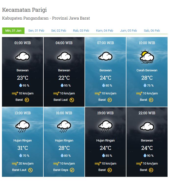 Laporan Harian & Prakiraan Cuaca Kabupaten Pangandaran – Minggu, 31 Januari 2021