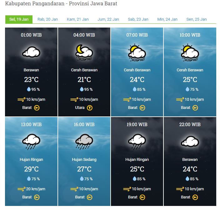 Laporan Harian & Prakiraan Cuaca Kabupaten Pangandaran – Selasa, 19 Januari 2021