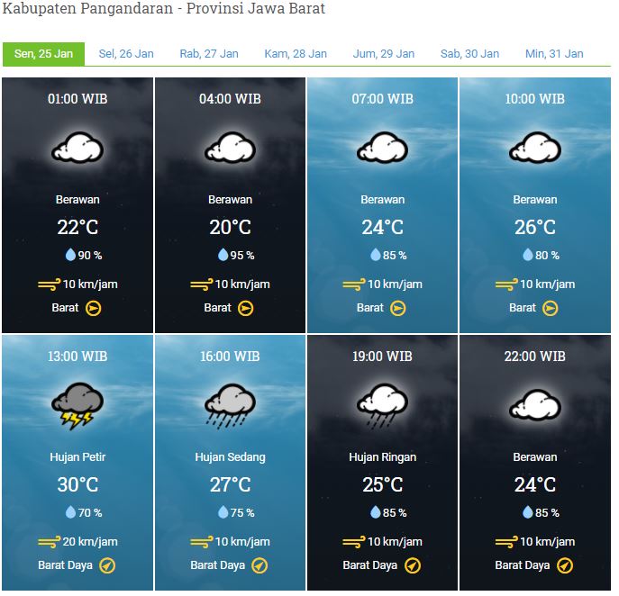 Laporan Harian & Prakiraan Cuaca Kabupaten Pangandaran – Senin, 25 Januari 2021