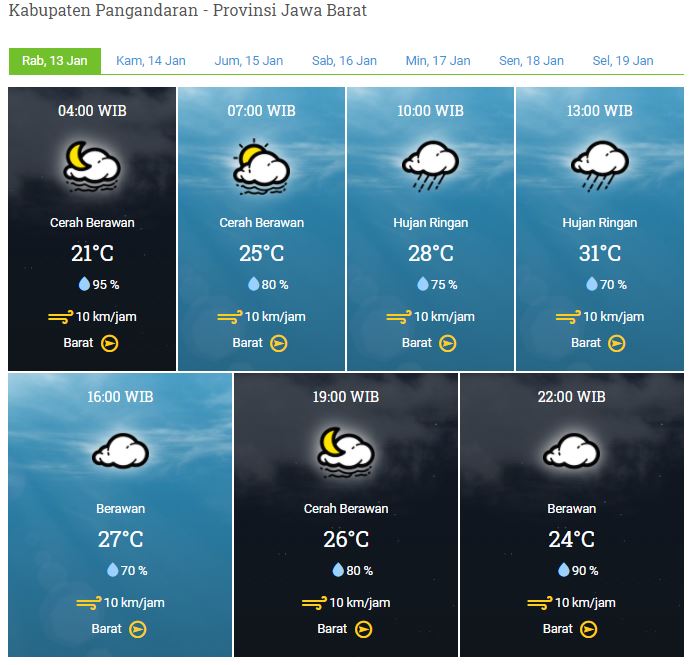 Laporan Harian & Prakiraan Cuaca Kabupaten Pangandaran – Rabu, 13 Januari 2021