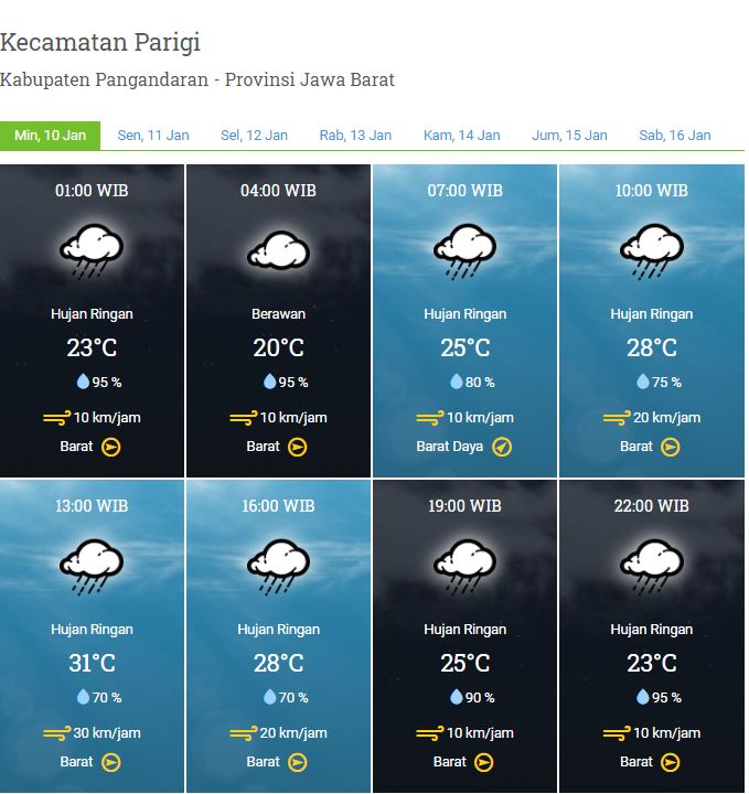 Laporan Harian & Prakiraan Cuaca Kabupaten Pangandaran – Minggu, 10 Januari 2021