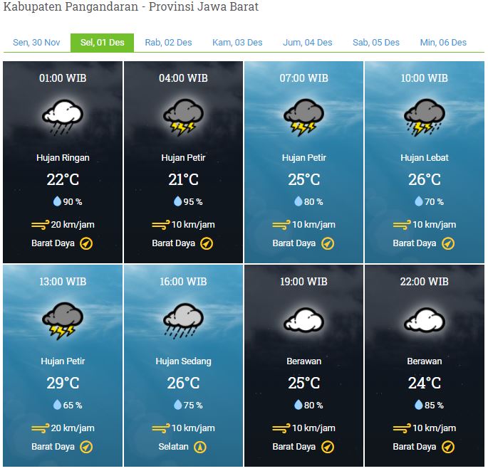 Laporan Harian & Prakiraan Cuaca Kabupaten Pangandaran – Selasa, 01 Desember 2020