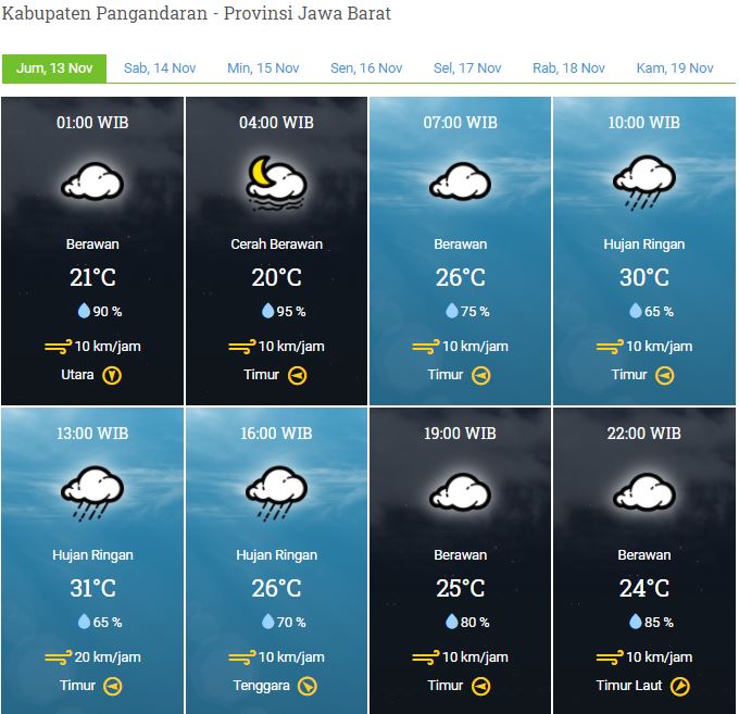 Laporan Harian & Prakiraan Cuaca Kabupaten Pangandaran – Jum’at, 13 November 2020