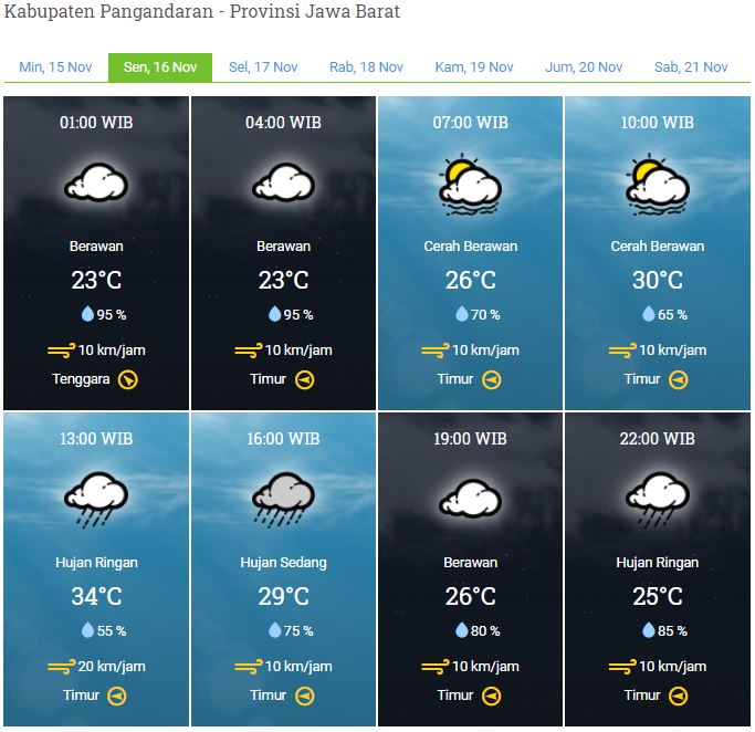 Laporan Harian & Prakiraan Cuaca Kabupaten Pangandaran – Senin, 16 November 2020