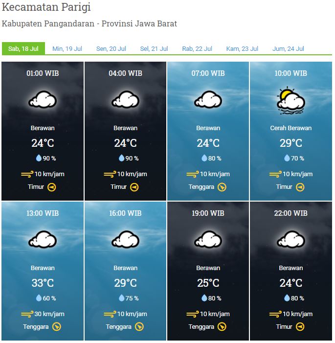 Laporan Harian & Prakiraan Cuaca Kabupaten Pangandaran – Sabtu, 18 Juli 2020
