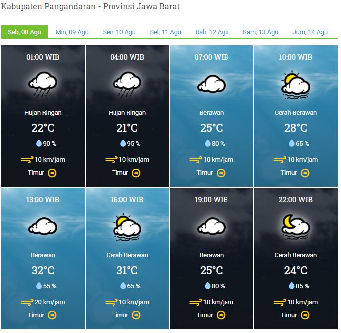 LAPORAN HARIAN & PRAKIRAAN CUACA KABUPATEN PANGANDARAN – SABTU, 08 AGUSTUS 2020