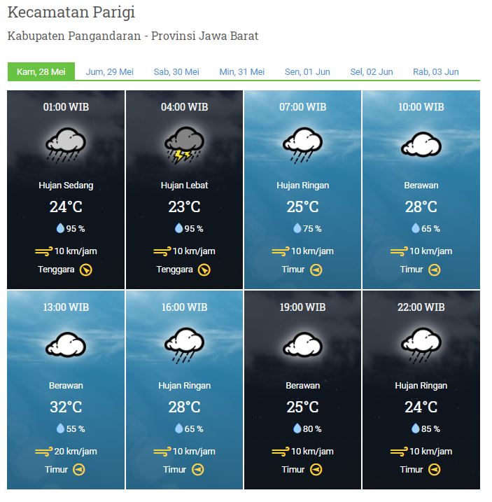 Laporan Harian Dan Prakiraan Cuaca Kabupaten Pangandaran, Kamis 28 Mei 2020
