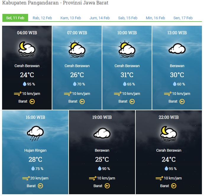 Laporan Harian & Prakiraan Cuaca Kabupaten Pangandaran – Selasa, 11 Februari 2020