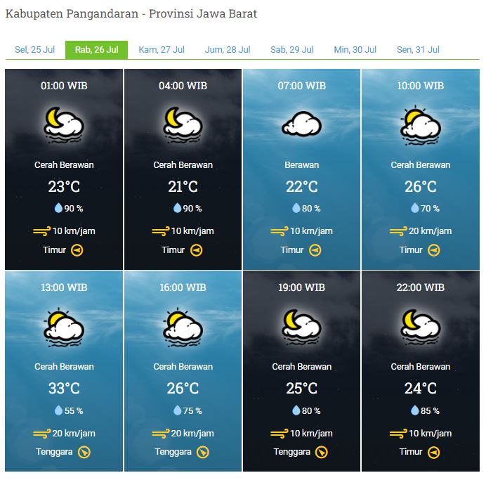 Laporan Harian & Prakiraan Cuaca Kabupaten Pangandaran – Rabu, 26 Juli 2023