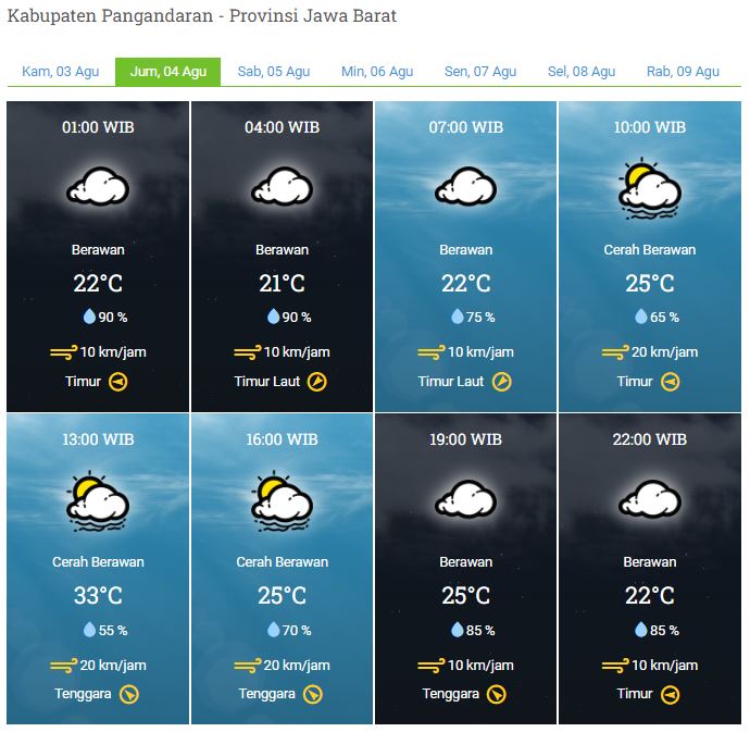 Laporan Harian & Prakiraan Cuaca Kabupaten Pangandaran – Jumat, 04 Agustus 2023
