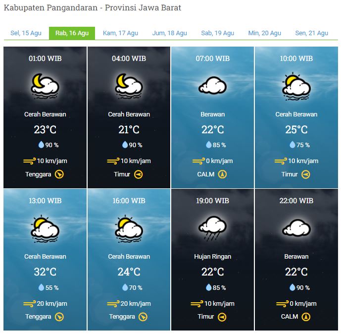 Laporan Harian & Prakiraan Cuaca Kabupaten Pangandaran – Rabu, 16 Agustus 2023