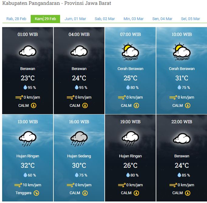 Laporan Harian & Prakiraan Cuaca Kabupaten Pangandaran – Kamis, 29 Februari 2024