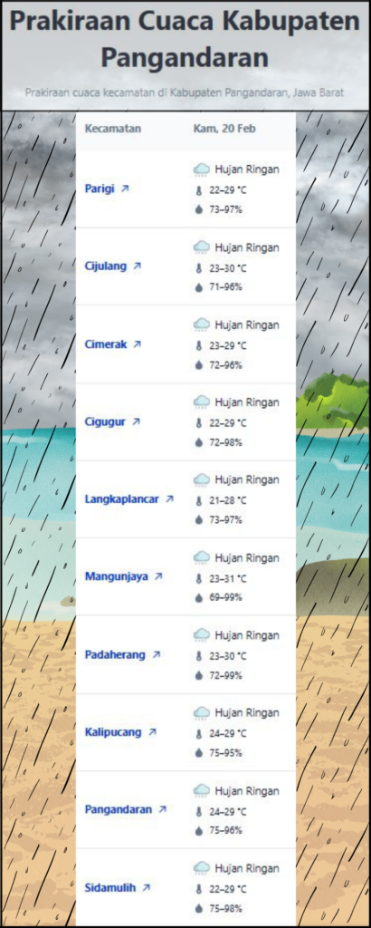 Laporan Harian & Prakiraan Cuaca Kabupaten Pangandaran – Kamis, 20 Februari 2025.