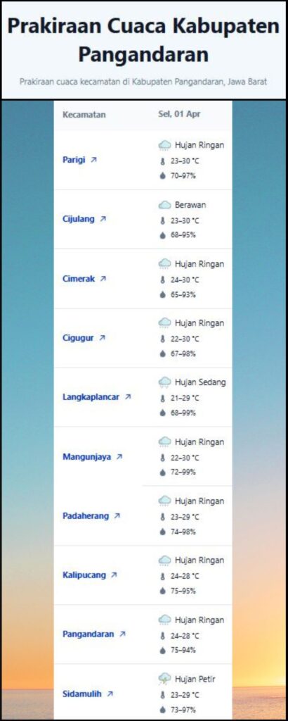 Laporan Harian & Prakiraan Cuaca Kabupaten Pangandaran – Selasa, 01 April 2025.