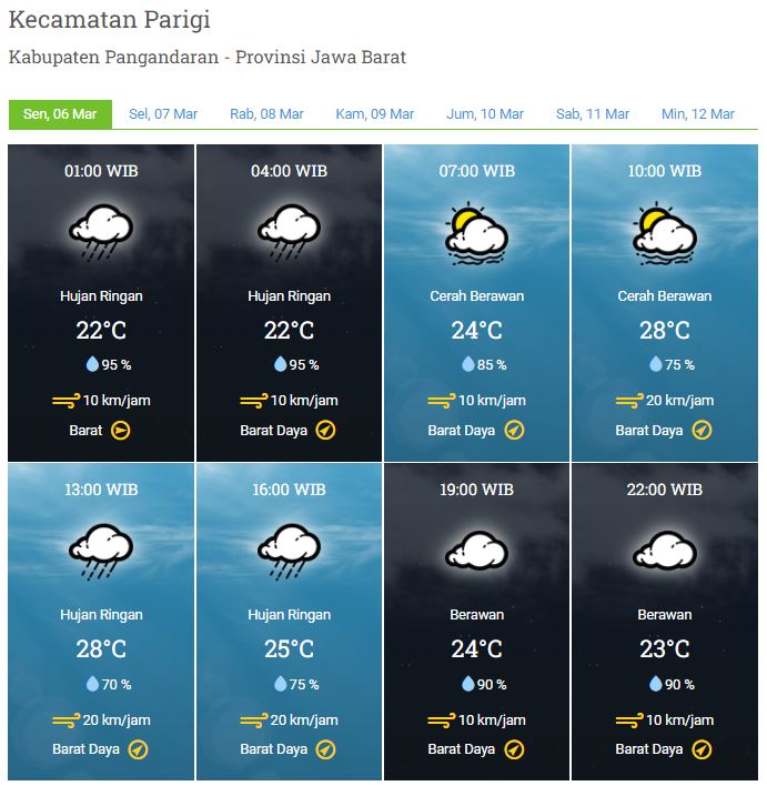 Laporan Harian & Prakiraan Cuaca Kabupaten Pangandaran – Senin, 06 Maret 2023