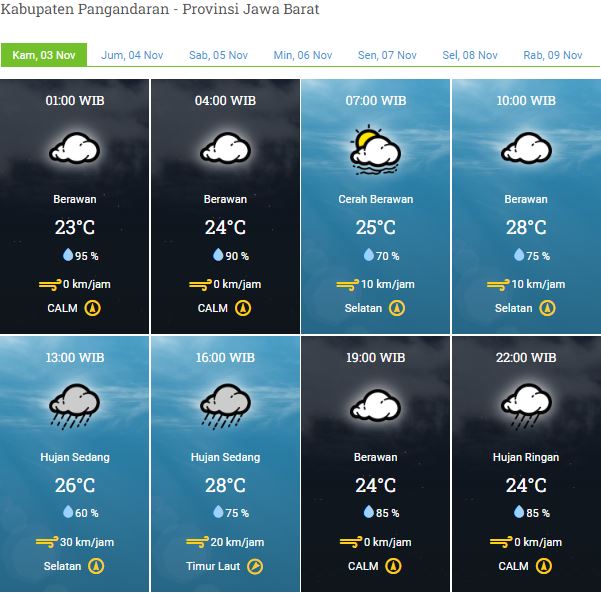 Laporan Harian & Prakiraan Cuaca Kabupaten Pangandaran – Minggu, 06 November 2022