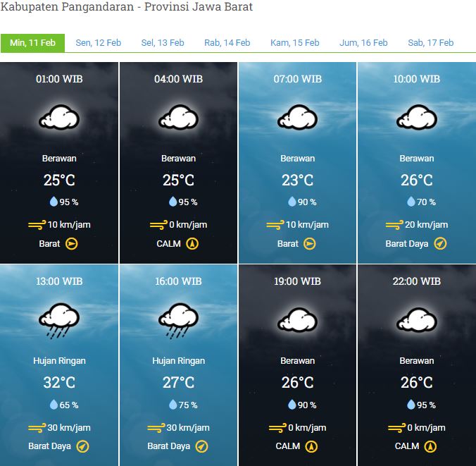 Laporan Harian & Prakiraan Cuaca Kabupaten Pangandaran – Minggu, 11 Februari 2024