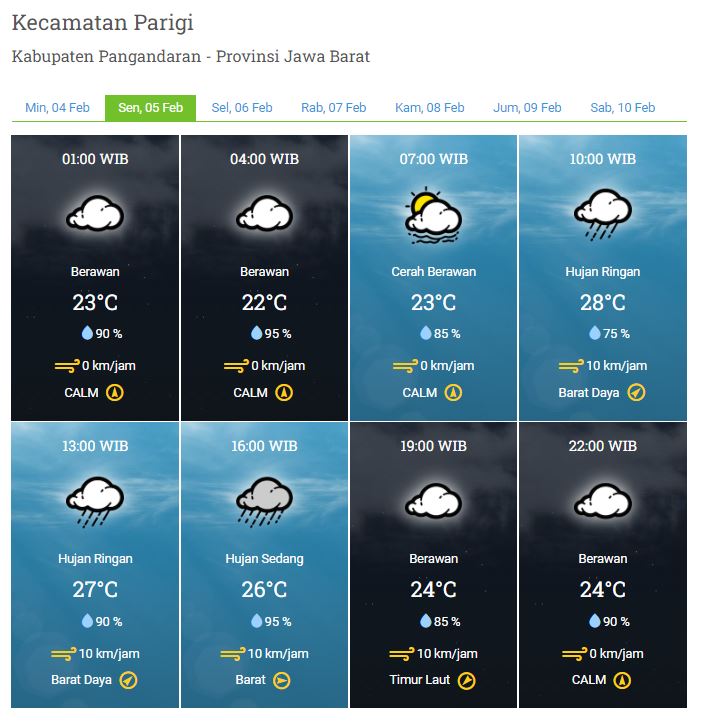 Laporan Harian & Prakiraan Cuaca Kabupaten Pangandaran – Senin, 05 Februari 2024