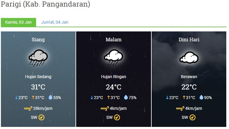 Laporan Harian & Prakiraan Cuaca Kabupaten Pangandaran – Kamis, 03 Januari 2019